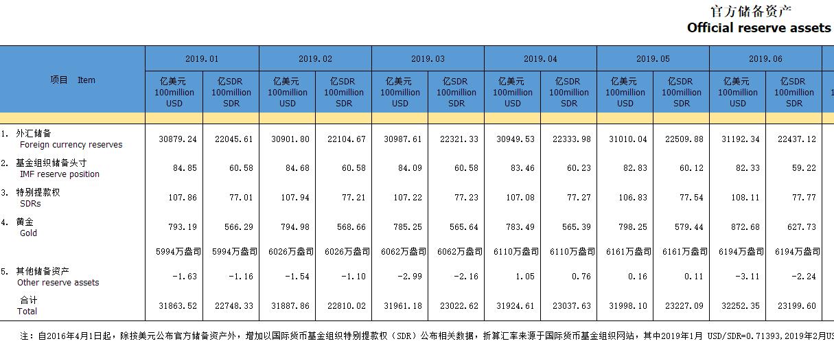 答:截至2019年6月末,我国外汇储备规模为31192亿美元,较5月末上升182亿美元,升幅为0.6%。