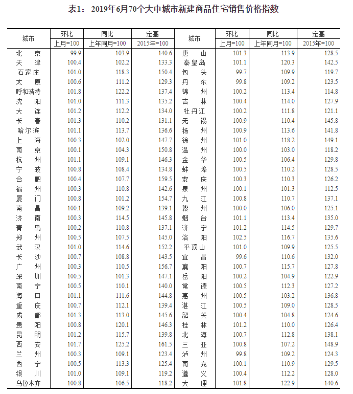 上证报中国证券网讯 据国家统计局7月15日消息,国家统计局今日发布了2019年6月份70个大中城市商品住宅销售价格变动情况统计数据,国家统计局城市司高级统计师刘建伟指出,6月份商品住宅销售价格涨幅稳中有降。