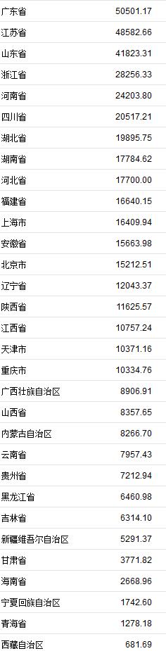 31省份2019年上半年GDP数据。来自国家统计局