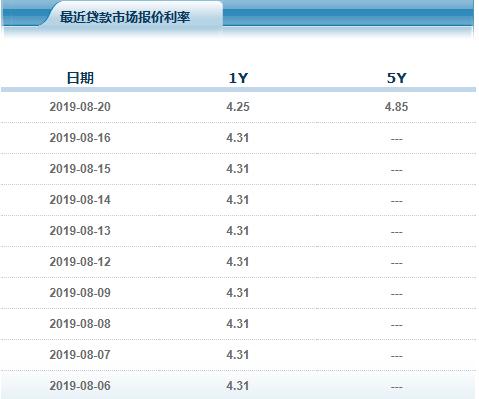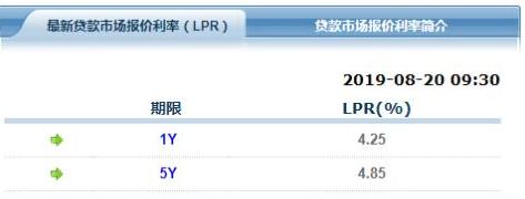 金融界网站8月20日讯 新LPR首次报价出炉,中国公布新机制下1年期贷款市场报价利率为4.25%;此前为4.31%,5年期贷款市场报价利率为4.85%。