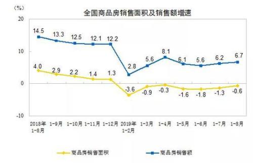 从销售指标看,1—8月份,商品房销售面积101849万平方米,同比下降0.6%,降幅比1—7月份收窄0.7个百分点;商品房销售额95373亿元,同比增长6.7%,增速加快0.5个百分点。
