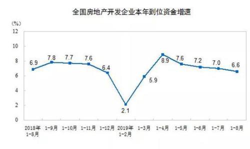 再来看资金指标,1—8月份,房地产开发企业到位资金113724亿元,同比增长6.6%,增速比1—7月份回落0.4个百分点。这是该指标连续4个月增速回落。