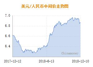 金融界网站12月11日讯 今日人民币兑美元中间价报6.8996元,较上一交易日(12月10日)的6.8693元下调303个基点。