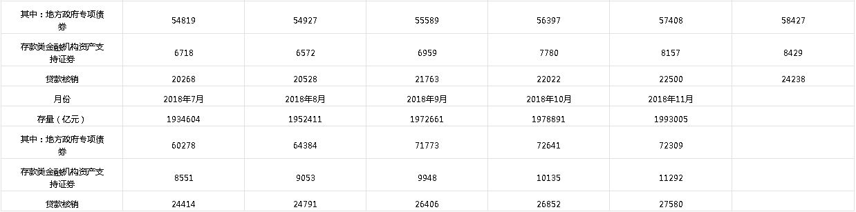 注2:2018年7月起,人民银行完善社会融资规模统计方法,将“存款类金融机构资产支持证券”和“贷款核销”纳入社会融资规模统计,在“其他融资”项下反映。