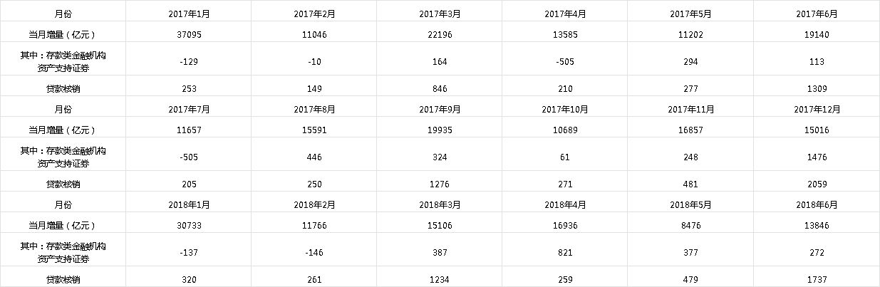注3:2018年7月起,人民银行完善社会融资规模统计方法,将“存款类金融机构资产支持证券”和“贷款核销”纳入社会融资规模统计,在“其他融资”项下反映。完善后,2017年以来各月可比口径的社会融资规模增量如下: