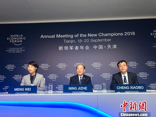 9月19日,正在天津举行的2018年夏季达沃斯论坛上,国家信息中心正式发布《“一带一路”大数据报告2018》。推进“一带一路”建设工作领导小组办公室副主任、国家发改委副主任、国家统计局局长宁吉喆在发布会上表示,报告的发布能够为国内外各界了解、参与“一带一路”建设提供更为丰富的信息。中新社记者 魏晞 摄