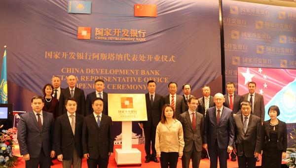 记者获悉,国家开发银行阿斯塔纳代表处当地时间15日在哈萨克斯坦首都阿斯塔纳揭牌。哈萨克斯坦阿斯塔纳国际金融中心总裁克里姆别托夫、哈萨克斯坦共和国经济部部长苏列门诺夫、中国国家开发银行副行长刘金、中国驻哈萨克斯坦共和国特命全权大使张霄出席揭牌仪式并共同为代表处揭牌。阿斯塔纳代表处是国开行在中亚地区设立的首家正式机构,也是国开行继开罗、莫斯科、里约热内卢、加拉加斯、伦敦、万象之后设立的第七家海外代表处。