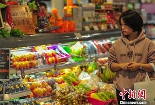 资料图:一名消费者在超市选购商品。中新社记者 于海洋 摄