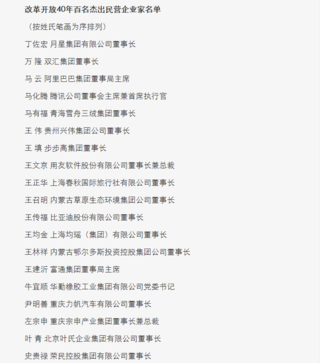 在改革开放40周年之际,为宣传民营经济发展巨大成就,展示民营企业家中国特色社会主义事业建设者风采,大力弘扬优秀企业家精神,鼓励广大非公有制经济人士“不忘创业初心,接力改革伟业”,为实现中华民族伟大复兴中国梦作出新的贡献,中央统战部、全国工商联决定推荐宣传改革开放40年百名杰出民营企业家。10月24日,全国工商联在北京举行新闻发布会,发布《改革开放40年百名杰出民营企业家名单》。