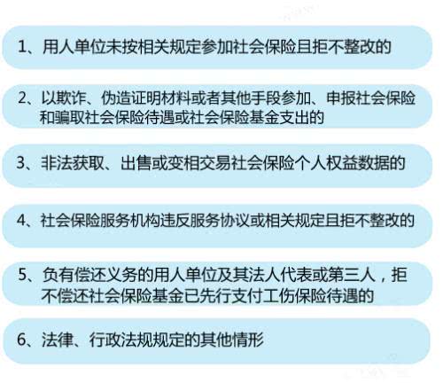6种情形将列入社保“黑名单”。中新网记者 李金磊 制图