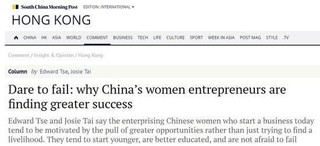 创业不怕输是中国女企家获得成功的原因。图片来源:《南华早报》网站报道截图