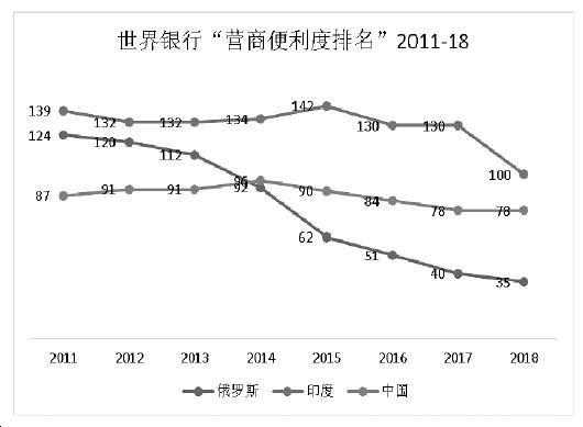 从排名上看,世行“营商便利度”名次也仅能为各国市场法治环境的比较提供部分参照。以俄罗斯为例,在普京政府的主导下,俄罗斯于“营商便利度”中的名次上升迅猛,但这并不能说明其在短时间内就形成了有利于市场繁荣的法治环境。相反,伦敦政治经济学院(LSE)团队指出,在名次大幅提升的同时,由于国内市场集中和产权保护问题没有解决,俄罗斯对其国内中小企业和国外投资者而言,仍不具有良好营商环境。而在排名较高的国家之间,名次所呈现的信息也有限。新加坡在历年营商环境评估中都排名颇高(2019年排名第2),瑞典和法国则较为逊色(二者均为20-30名之间)。但这并不说明瑞典和法国实际的营商环境劣于新加坡,相反,三者在发展过程中,都各自形成了促进经济繁荣的良好法治实践。