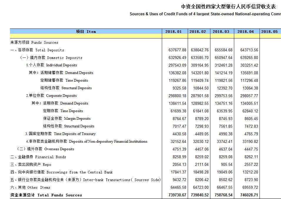 据央行数据,中资全国性四大银行4月份新增人民币贷款3147亿元,截至4月底各项人民币贷款为44.5万亿元。