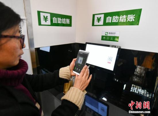 资料图:无人超市内,顾客通过手机扫码自助结账。中新社记者 任东 摄