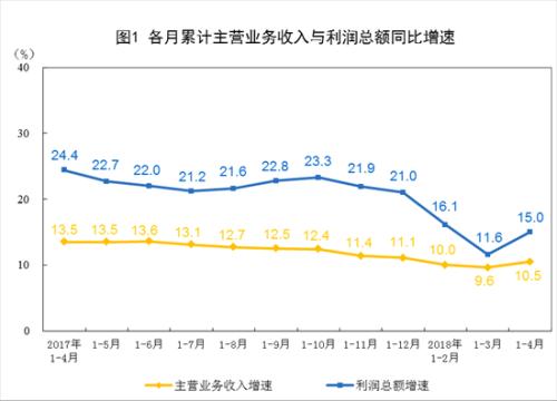 1-4月份,全国规模以上工业企业实现利润总额21271.7亿元,同比增长15%,增速比1-3月份加快3.4个百分点。