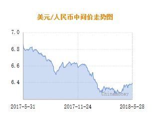 金融界外汇5月29日讯 今日人民币兑美元中间价报6.4021元,较上一交易日(5月25日)的6.3962元下调59个基点,为1月来首次跌破6.4关口。