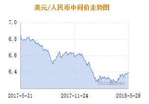 金融界外汇5月30日讯 今日人民币兑美元中间价报6.4207元,较上一交易日(5月29日)的6.4021元下调186个基点,连续第五天调降。