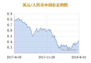 金融界外汇6月4日讯 今日人民币兑美元中间价报6.4208元,较上一交易日(6月1日)的6.4078元下调130个基点。