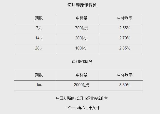 金融界网站讯:6月19日,央行今日进行2000亿元人民币左右MLF(中期借贷便利)操作。均为一年期,利率持平3.3%。