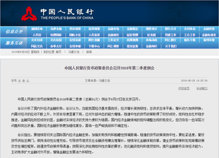 据中国人民银行网站信息,6月27日,中国人民银行货币政策委员会召开2018年第二季度例会在北京召开,中国人民银行行长兼货币政策委员会主席易纲主持会议。