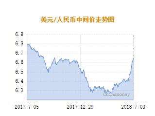 金融界外汇7月4日讯 今日人民币兑美元中间价报6.6595元,较上一交易日(7月3日)的6.6497元下调98个基点。