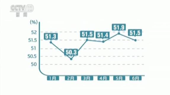 这是最新一期中国制造业采购经理人指数走势图,这一指数已经连续23个月在50%以上的景气区间运行,在刚刚过去的6月,企业的新增订单数量不减,工业产品存货周转加快,企业利润率有所提高。这些指标都透视出,微观经济层面不断向好。