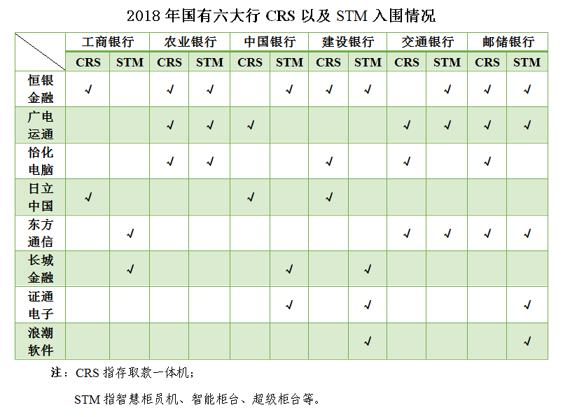 从2018年国有六大行存取款一体机以及智慧柜员机、智能柜台、超级柜台等设备入围情况可以看出,恒银金融现金类设备和智慧柜员机设备保持同步发展趋势,入围数量仍处于领先地位;广电运通针对智慧柜员机类设备的市场短板加速布局;长城金融在现金类设备市场仍未取得突破。