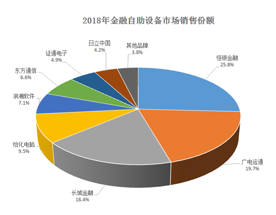 2018年,智慧柜员机类设备总体采购量已经远远超越现金类设备,ATM行业市场格局发生新的变化。恒银金融凭借在现金类和智慧柜员机类设备的综合优势,2018年金融自助设备市场销售份额行业领先。