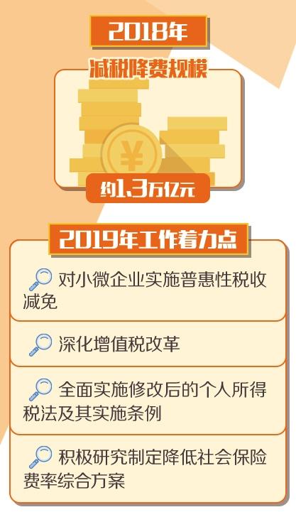 2018年全年,我国减税降费规模约1.3万亿元。许宏才表示,2019年要有更大规模的减税和更为明显的降费,更好地促进实体经济健康发展。