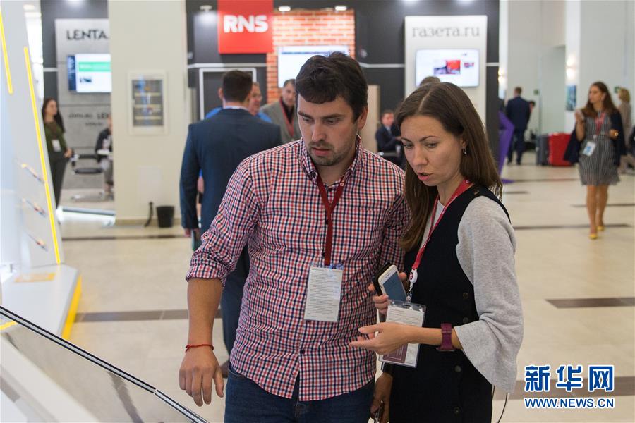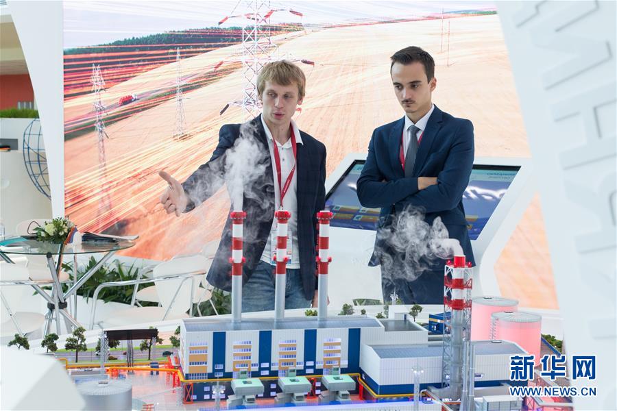 9月11日,在俄罗斯符拉迪沃斯托克,人们参观东方经济论坛上的展位。 新华社记者白雪骐摄