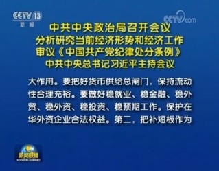 昨天的中央政治局会议重申了保持流动性合理充裕的要求。此外,提出了“六个稳”和保护在华外资企业合法权益的要求。