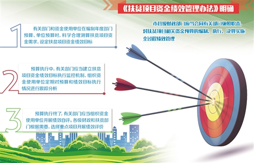 该负责人分析,绩效管理坚持目标导向,注重精准脱贫绩效目标的实现程度,聚焦提高脱贫质量和减贫效果,有利于瞄准贫困人口精准帮扶,做到扶真贫、真扶贫、真脱贫。对扶贫项目资金实施全过程绩效跟踪,实行资金使用部门自我管理和外部监管相结合,赋予基层精准施策更大自主权,有利于充分调动贫困地区干部群众的积极性和创造性,增强贫困人群自我发展能力,切实提高扶贫成果可持续性,让贫困人群有更多的获得感。