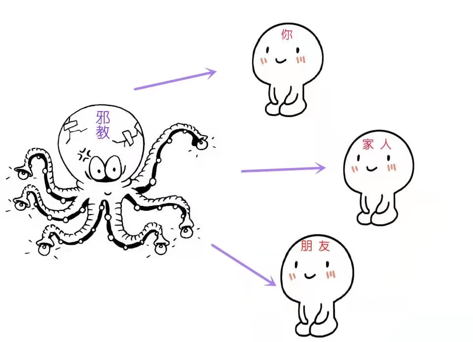 也许你认为自己的警惕心很强,不太可能被骗。但邪教的触手可不止出现在你的面前,它更可能在你不注意时悄然伸向了你的家人,你的朋友,你身边的每一个人。他们都可能会成为邪教分子蛊惑的对象。一旦不能及时发现并加以干涉制止,对家庭和谐、社会安定、国家安全将造成不可小觑的负面影响。