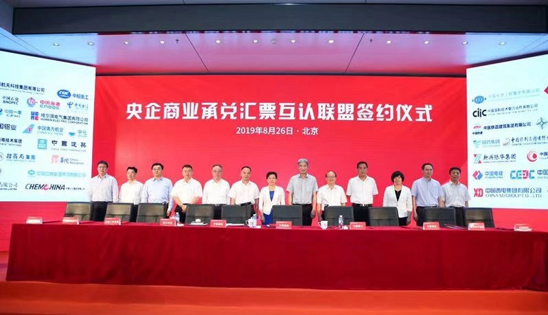 为进一步贯彻落实党中央、国务院决策部署,推进中央企业供给侧结构性改革,推动中央企业高质量发展,8月26日,国务院国有资本运营公司试点企业中国国新联合中核集团、航天科技、中国石化、中国海油、南方航空、中国五矿等51家中央企业在北京举行了央企商业承兑汇票互认联盟签约仪式。