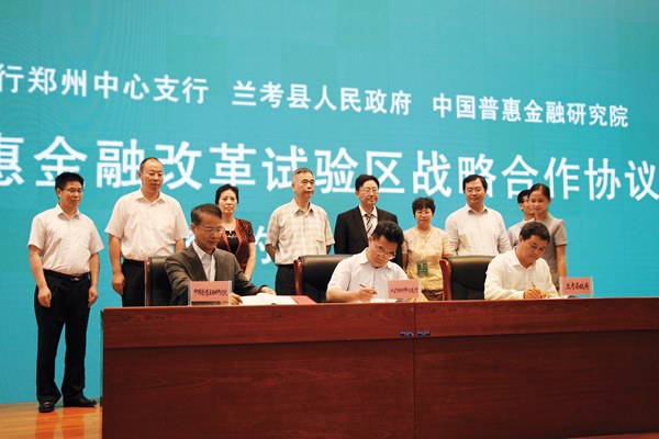 2017年6月,兰考县普惠金融改革试验区推进活动周召开,人民银行郑州中心支行、兰考县政府、中国普惠金融研究院签署合作协议。