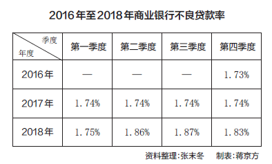 2月25日,银保监会发布2018年银行业四季度主要监管指标数据。值得注意的是,数据显示,去年四季度末,商业银行(法人口径,下同)不良贷款余额2.03万亿元,较上季末减少68亿元;不良贷款率1.83%,较上季末下降0.04个百分点,保持平稳。这也是在2016年四季度末后,两年来银行不良贷款率首次出现下降。