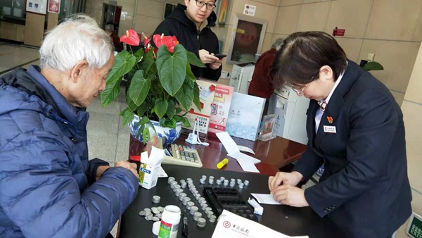 这段时间,70多岁的濮老先生心情很激动,在询问了几家银行都没能把手里1、2分的硬币换成整钱后,抱着试试看的心态,他走进了中行大成大厦支行。在这里,大堂经理小陈主动承担了硬币分类清点的工作,既节省了柜台员工清点的时间,避免了长时间占用窗口,也有效缩短了此笔业务的处理时间,786枚硬币,总金额26.86元,清点时间1小时20分钟,濮老先生带着满意的笑容离开。