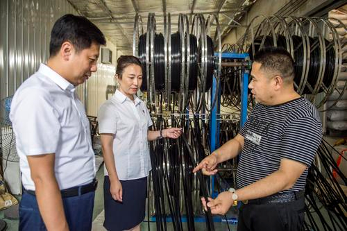 今年以来,农行河北廊坊永清县支行积极践行普惠金融,依托政银企合作平台为辖区小微企业提供了线上金融产品“纳税e贷”,助力小微企业发展壮大。该行“纳税e贷”产品自5月上线至今,新增小微企业23户,贷款金额965万元。图为该行工作人员在廊坊大树塑业调研企业生产情况。(刘志良 摄)