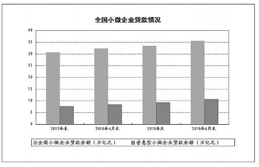小微企业金融服务实现增量、扩面、降本、控险平衡发展。截至2019年6月末,全国小微企业贷款余额35.63万亿元,其中普惠型小微企业贷款(单户授信总额1000万元及以下的小微企业贷款)余额10.7万亿元,较年初增长14.27%,比各项贷款增速高7.14个百分点;有贷款余额户数1988.31万户,较年初增加265.08万户。2019年上半年新发放的普惠型小微企业贷款平均利率为6.82%,较2018年全年平均利率下降0.58个百分点。全国普惠型小微企业贷款不良率3.75%,较年初下降0.43个百分点。2019年上半年,信用保险和贷款保证保险累计服务34.37万家小微企业,助其获得银行贷款533.68亿元。