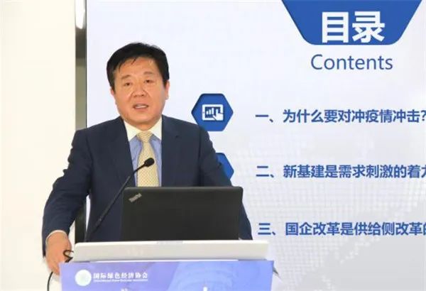 国务院国资委党委巡视组组长赵华林发发表主题报告。他指出,应对疫情对经济的负向冲击,要通过需求侧的刺激着力点与供给侧的改革着力点及两点措施之间的协调来助力经济纾困。新基建就是需求侧的刺激着力点,国企改革是供给侧改革的着力点,推动国企改革能有效促进新基建。赵华林强调,在新基建领域中,国企和民企的分工表现在,国企更注重于基础建设层面,而民企更应注重市场应用层面。面对百年一遇的疫情冲击,既要发力于需求侧的新基建投资,也要发力供给侧的国企改革,加强与市场的战略协同,形成供给与需求良性互动的正向循环,国有企业与民营企业合力推动新基建的投资与市场协同,有望成为疫情后经济发展的新动力。
