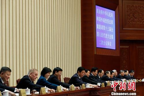 资料图:2019年1月30日,十三届全国人大常委会第八次会议闭幕会。本次常委会会议审议了外商投资法草案,并决定将这部法律草案提请十三届全国人大二次会议审议。中新社记者 杜洋 摄