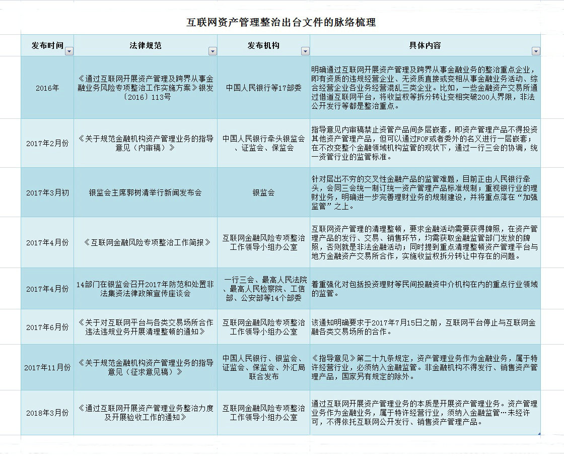 互联网资产管理整治出台文件的脉络梳理