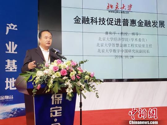 图为北京大学经济学院教授曹和平在作“金融科技促进普惠金融发展”主题演讲。 徐巧明 摄