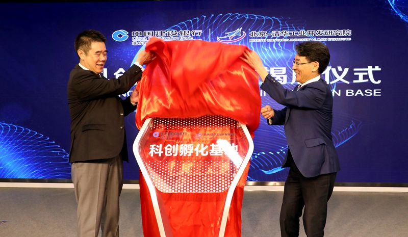 近日,建行北京市分行与北京清华工业开发研究院战略合作签约仪式暨“建行-清华工研院科创孵化基地”揭牌仪式在东升国际科学园举行。图为揭牌仪式现场。(燕平)