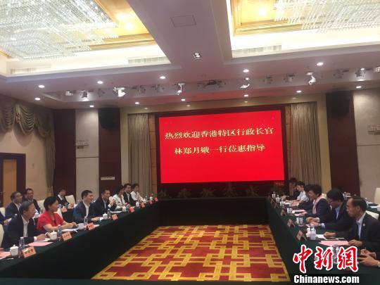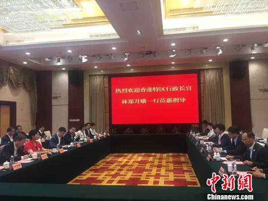 香港特区行政长官林郑月娥在广东惠州考察时与当地官员座谈。 宋秀杰 摄