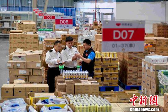 海关人员正在验放跨境电商货物 韩建全 摄