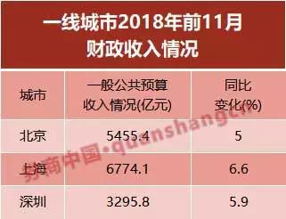北京、广州的数据暂未公布,不过从北京市财政局网站获悉,1~11月份,北京全市一般公共预算收入5455.4亿元,同比增长5%,完成年度预算94.3%。