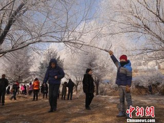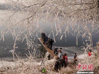 春节期间,游客在吉林松花江边欣赏雾凇景观。 苍雁 摄