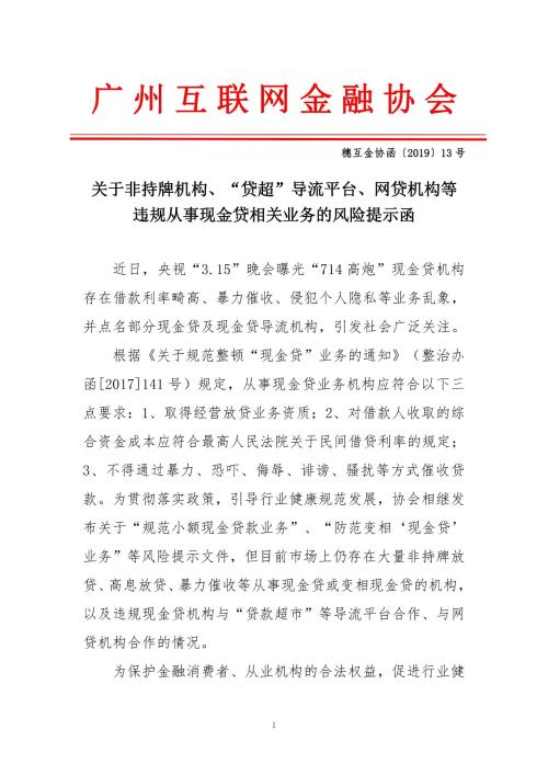 广州互金协会作出风险提示称,“APP商城”、“贷款超市”等导流平台应立即下架所有现金贷产品。