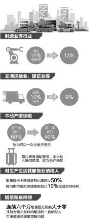 将制造业等行业现行16%的增值税税率降至13%,将交通运输业、建筑业等行业现行10%的税率降至9%。